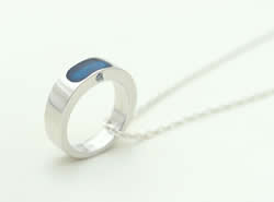 5、仕上げ完了! すべてを手作業で行い、まさに手塩にかけて作り上げた真心の逸品。渡辺氏いわく、出来上がった瞬間は「誰にも渡したくない!」という気持ちが自然と湧いてくるとか。メモリアルジュエリーには、オーダーいただいたお客様はもちろんのこと、妥協を許さぬクラフトマンの職人魂も込められているのです。