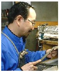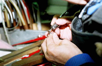 Craftsman’s Profile 渡辺敏朗(わたなべ としろう) 1979年より約8年間、真珠の留金メーカーに勤務する傍ら、彫金やデザインを独自に学ぶ。 退社後、留金作りやリフォームを中心としたジュエリーの“技術者”として独立。 現在は、メモリアルリングからペンダント、ブローチに至るまで様々なオーダーに対応できる“ジュエリー職人”として活躍の場を広げている。自らのホームページ 「下町の職人」 を立ち上げ、TV出演も果たす注目のクラフトマンである。 http://www.w-hoshoku.com/