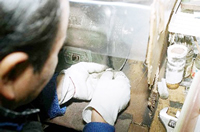 4、特殊加工の樹脂をはめ込み「バフ」で 最後の仕上げ 綺麗に磨かれたリングに特殊加工を施した樹脂(大切なお遺骨を納める部分)を慎重にはめ込んだ後、 バフ(研磨道具)で細心の注意を払いながら最後の仕上げを行ないます。