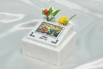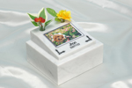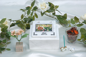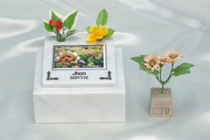 洋風なデザインに仕上げました。上部には切花を添えることができる花立を彫り込み、高さを取らないよう薄めにデザインしました。